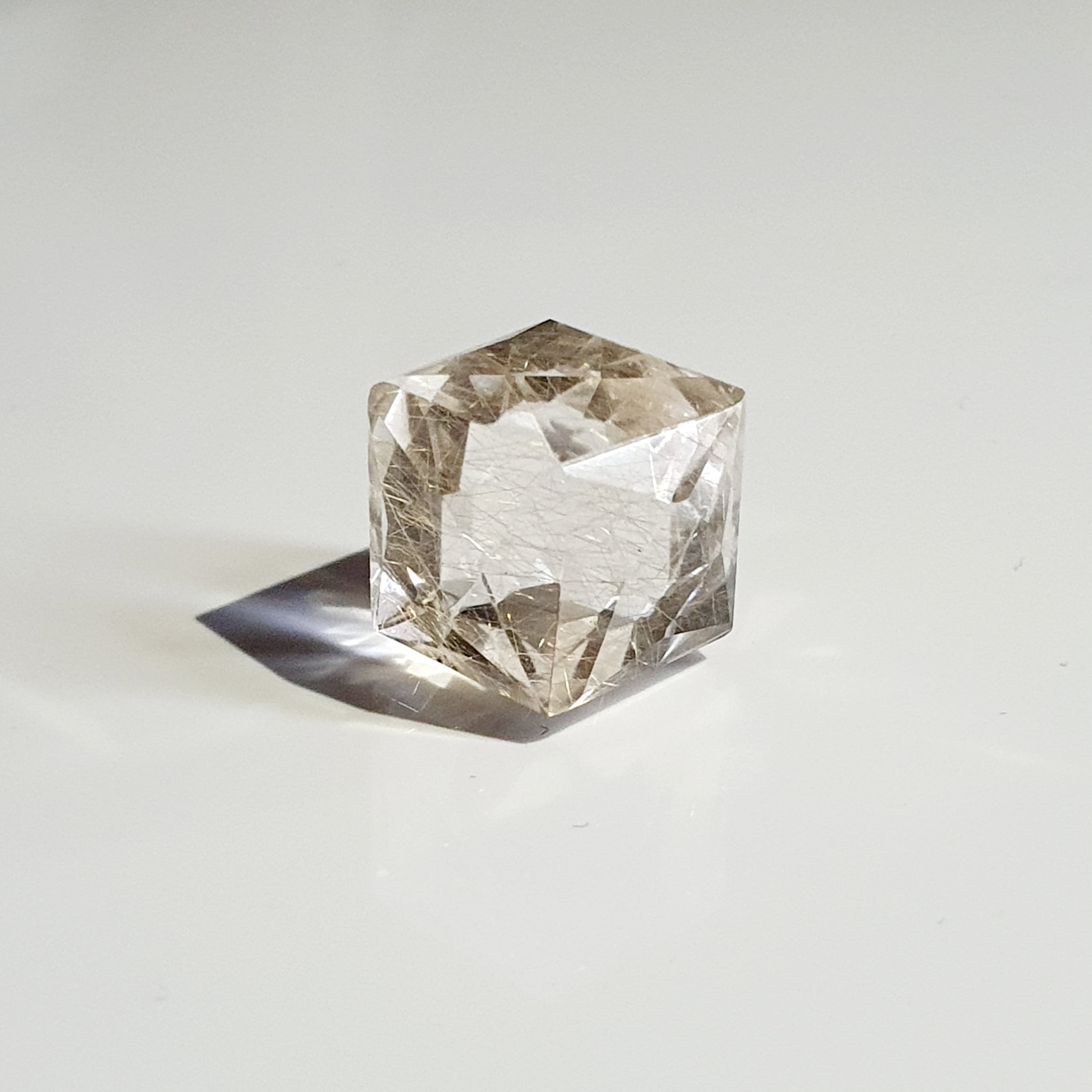 サイコロ状の天然石にカット面をつけ紙風船のような作品に仕上げました。