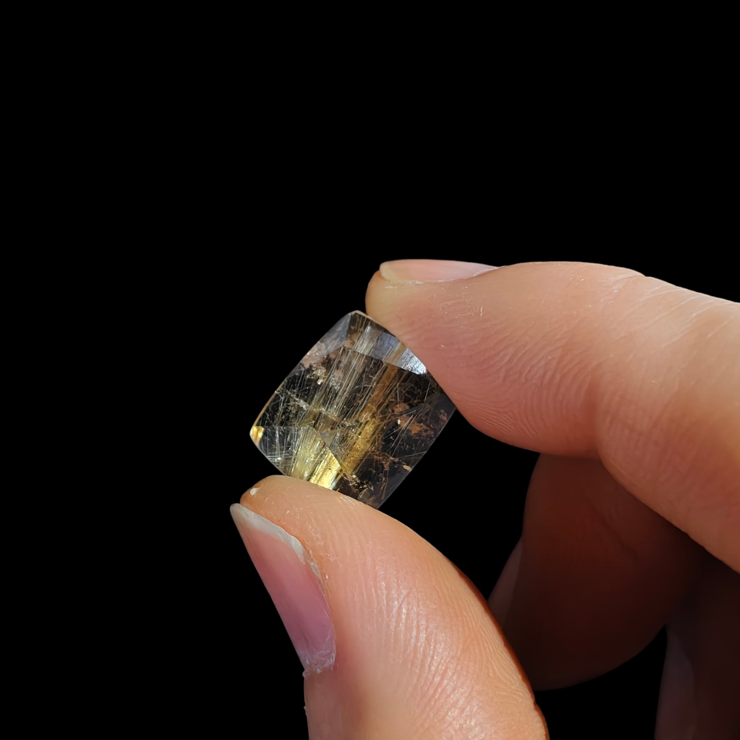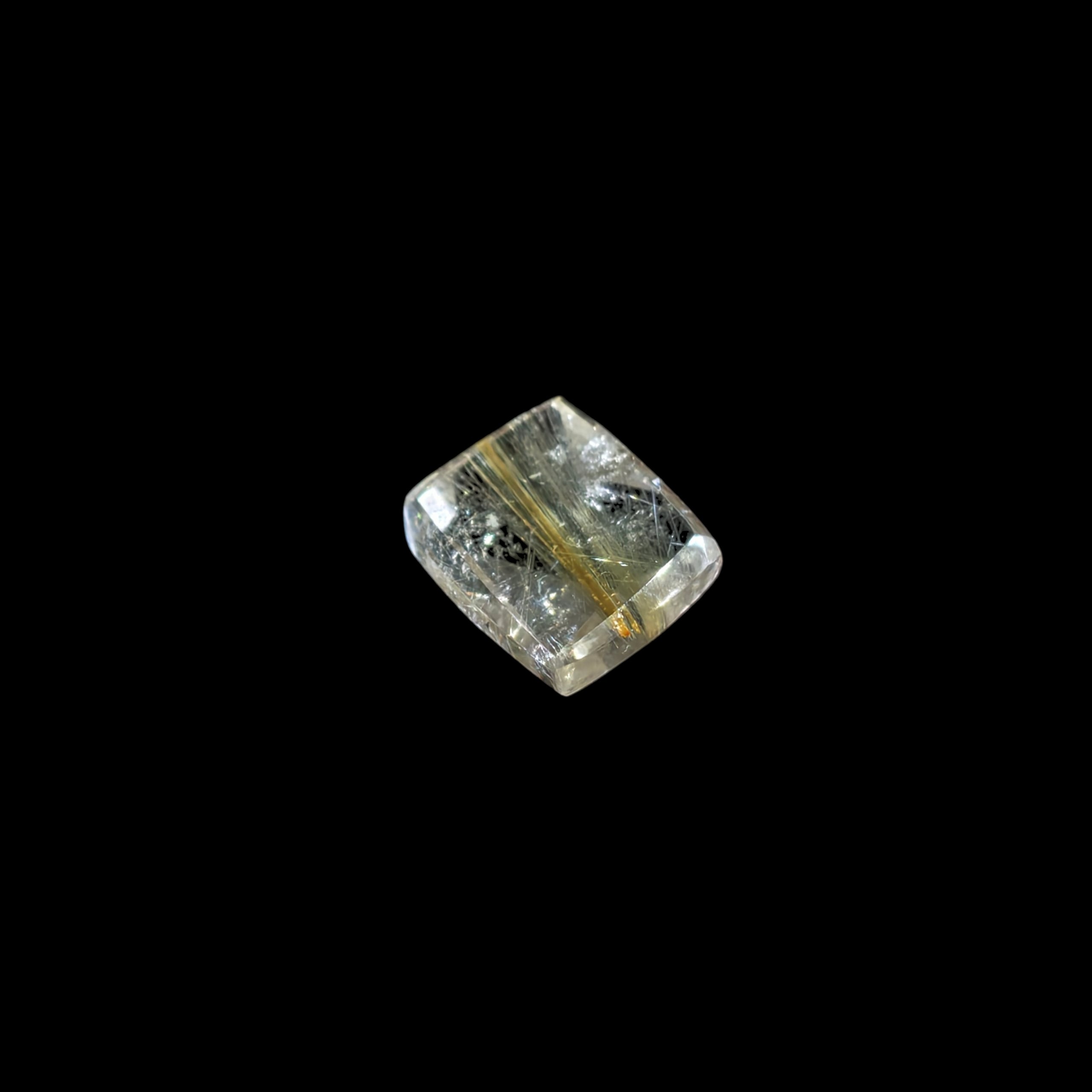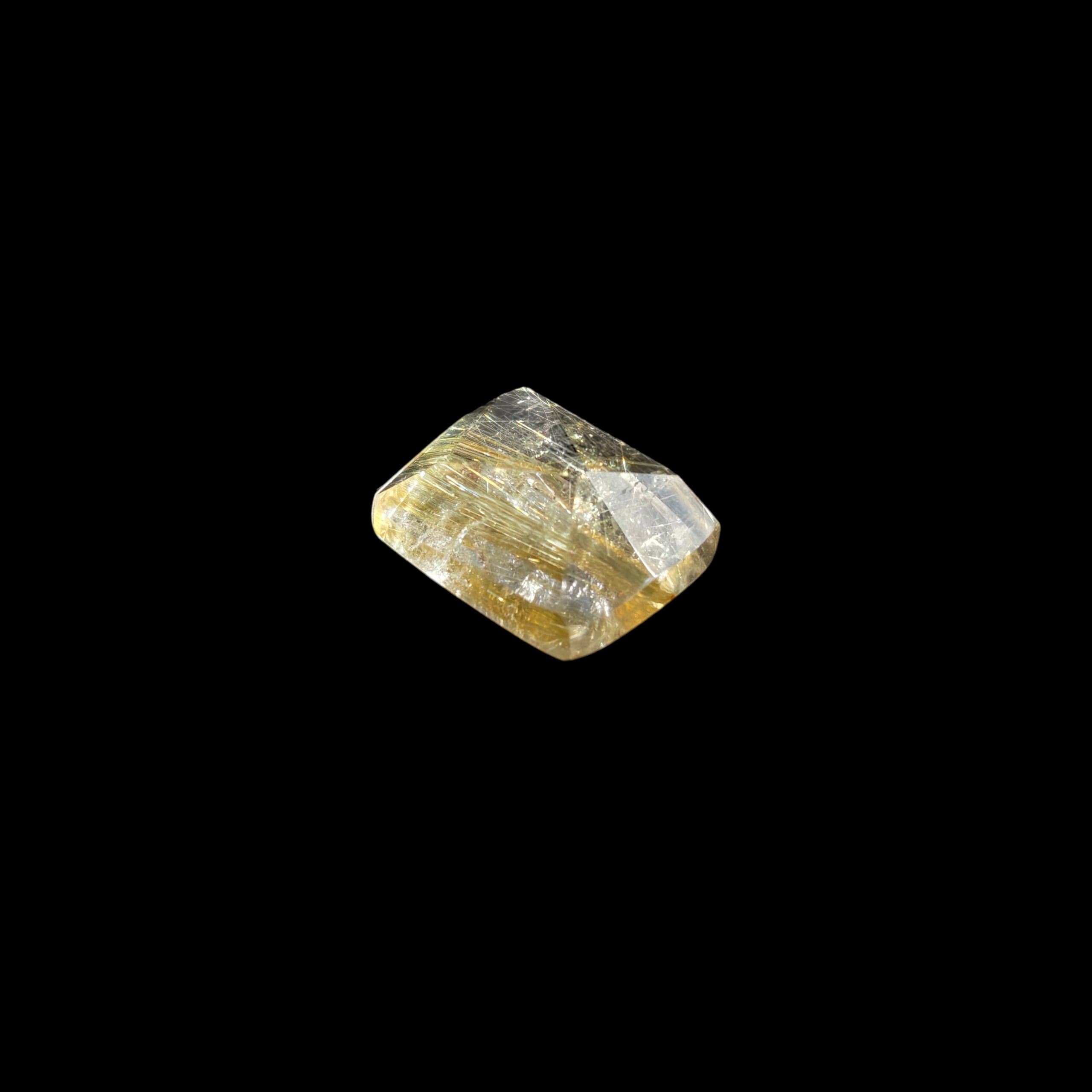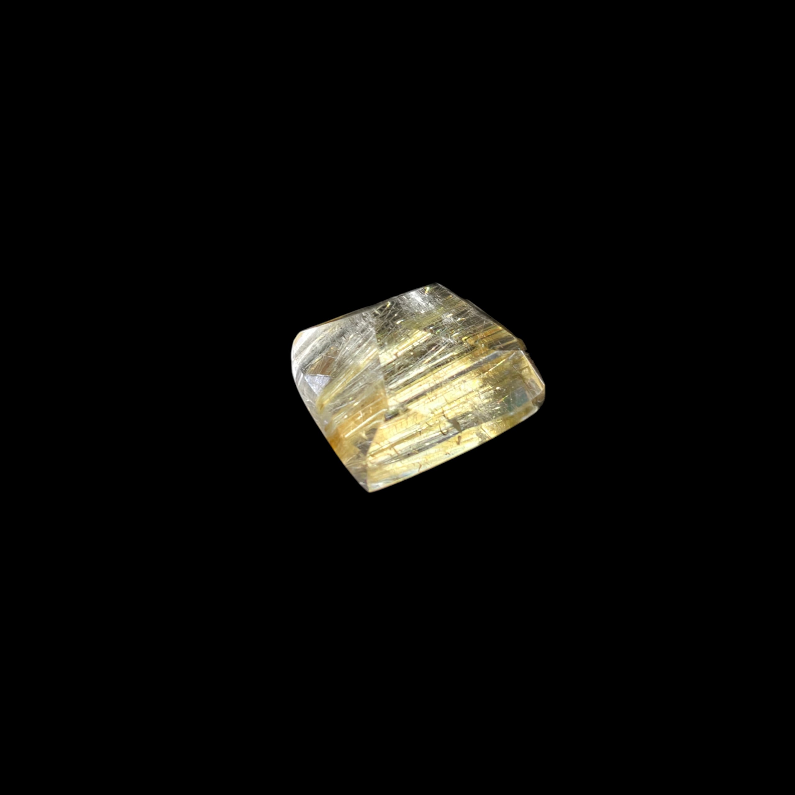 ルチルクォーツの原石を切り出し、ルチル特有の針が美しくみえるよう1つ1つランダムにカットしました