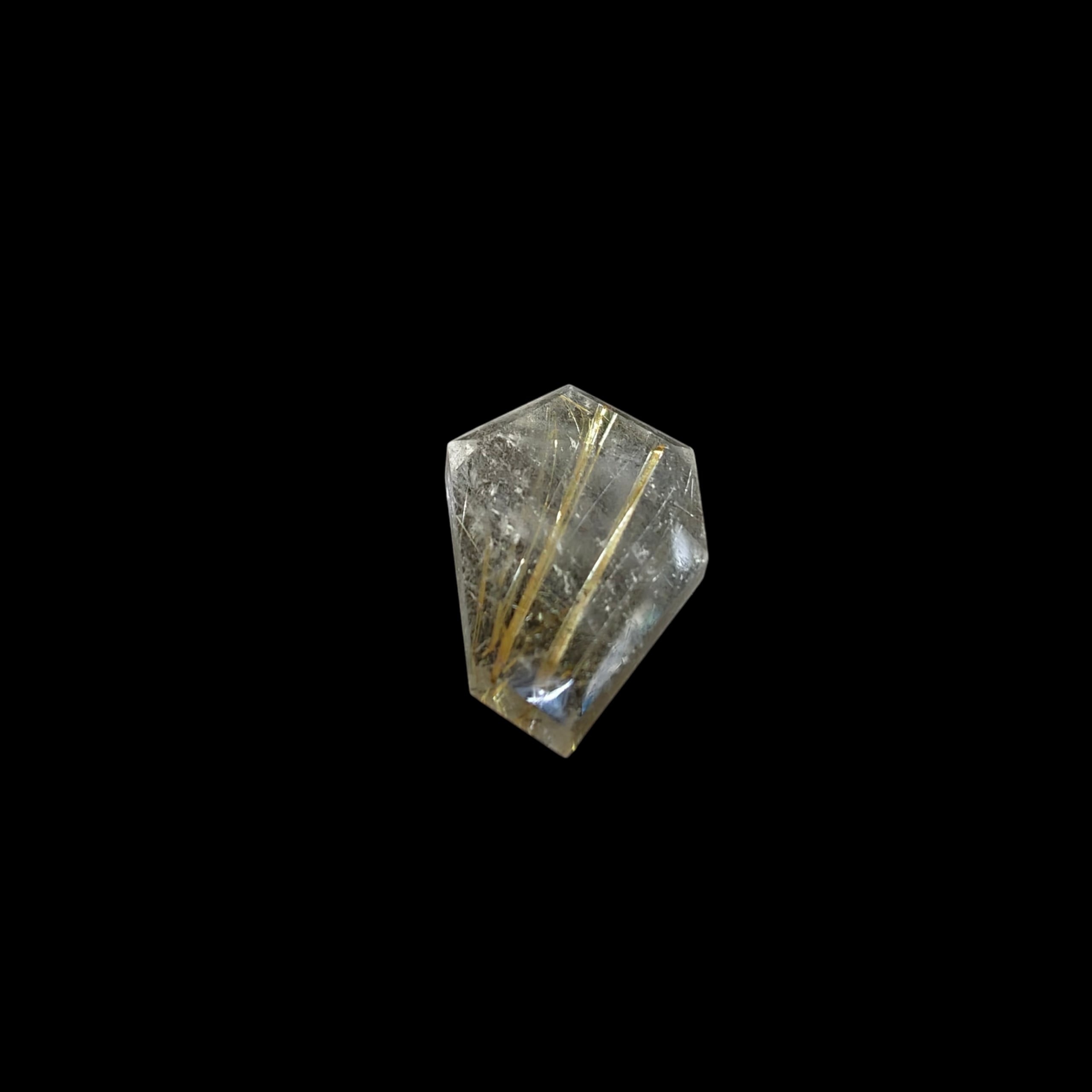 ルチルクォーツの原石を切り出し、ルチル特有の針が美しくみえるよう1つ1つランダムにカットしました