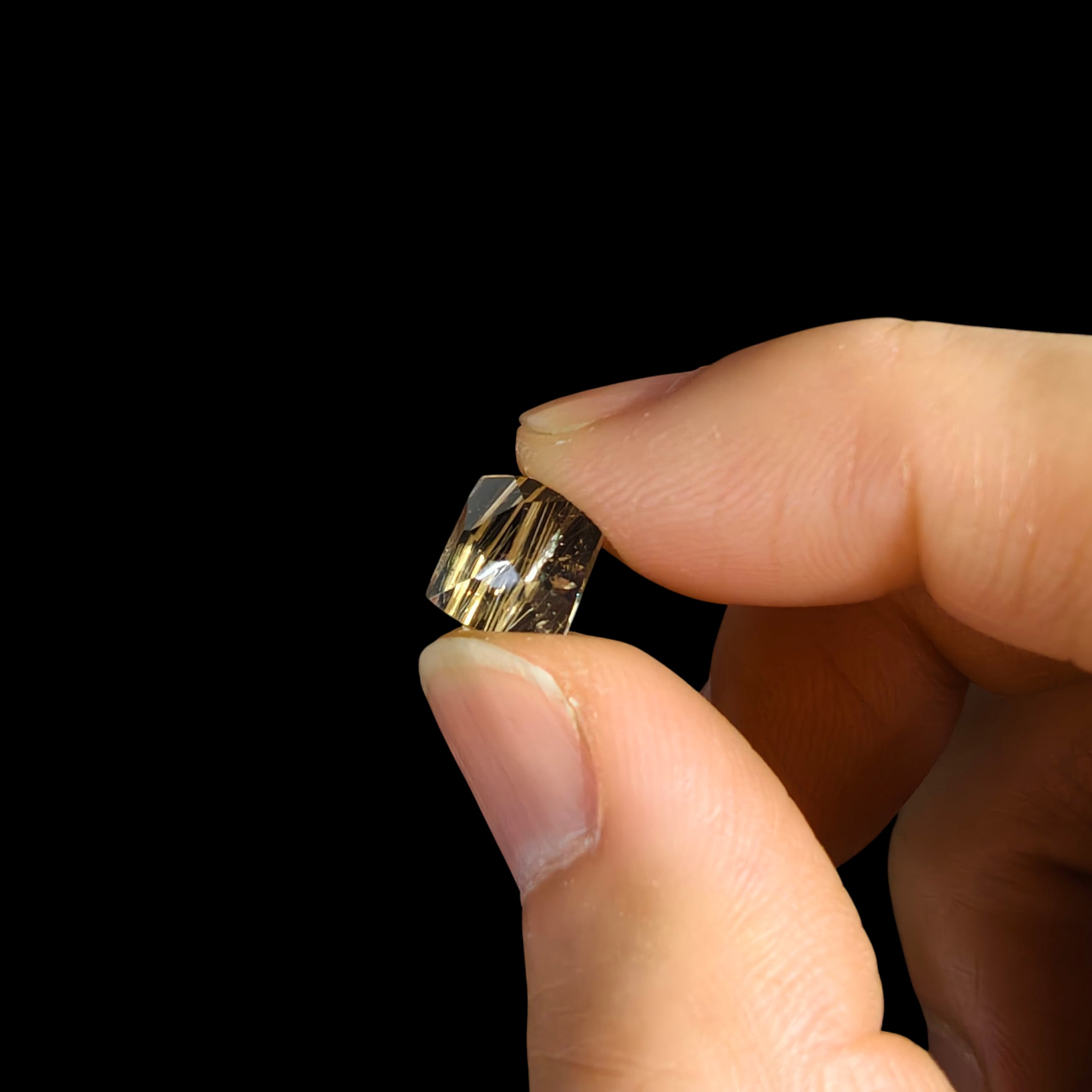 ルチルクォーツの原石を切り出し、ルチル特有の針が美しくみえるよう1つ1つランダムにカットしました