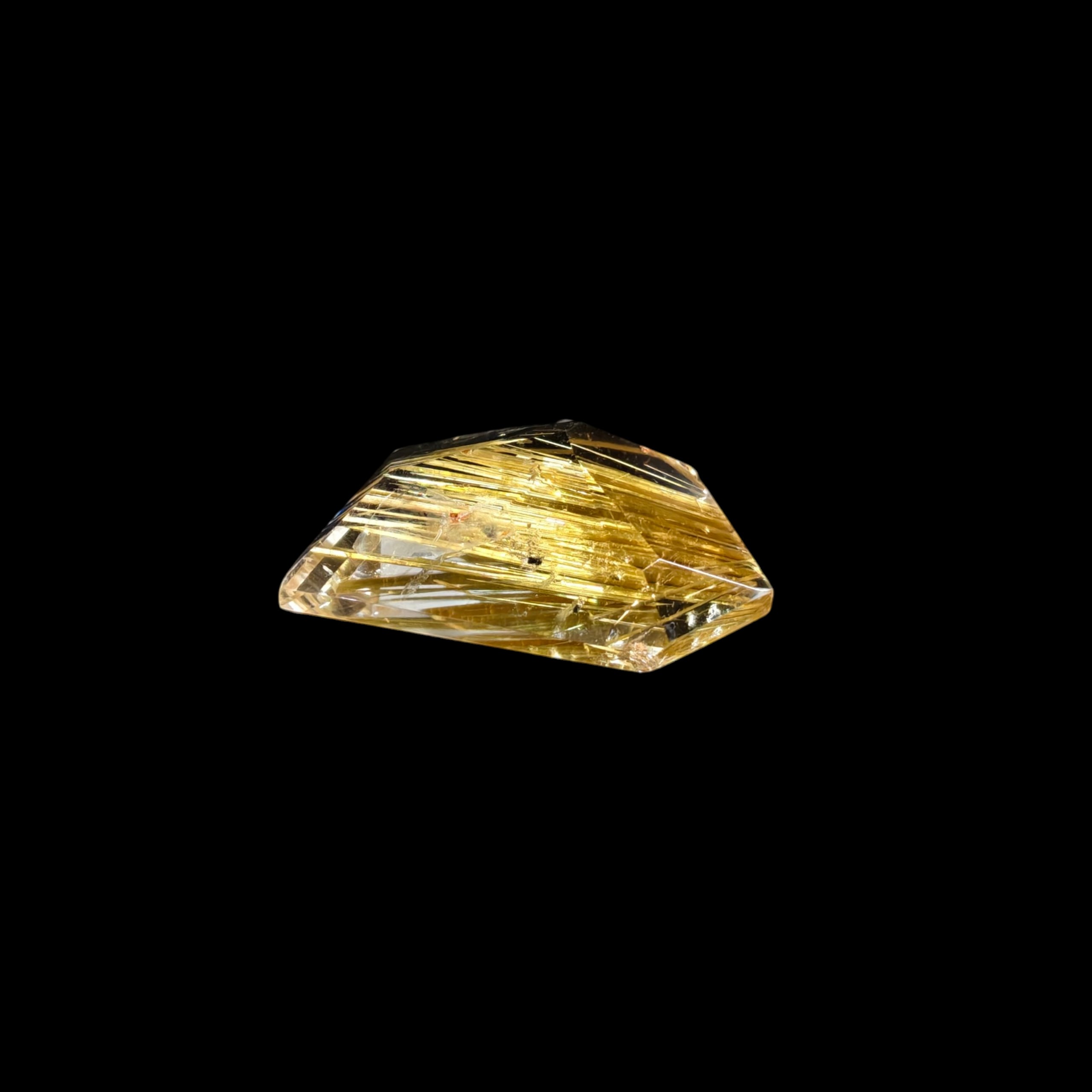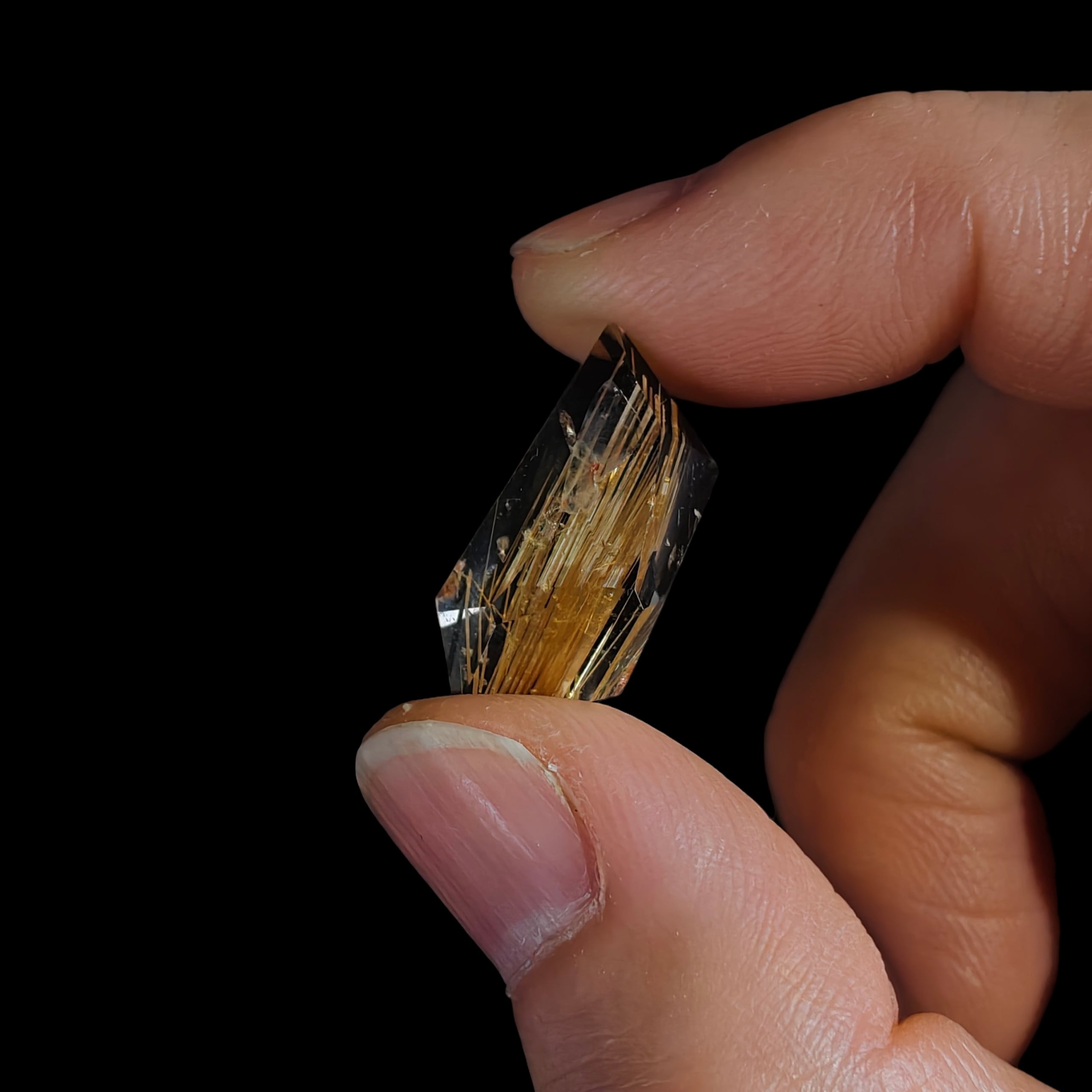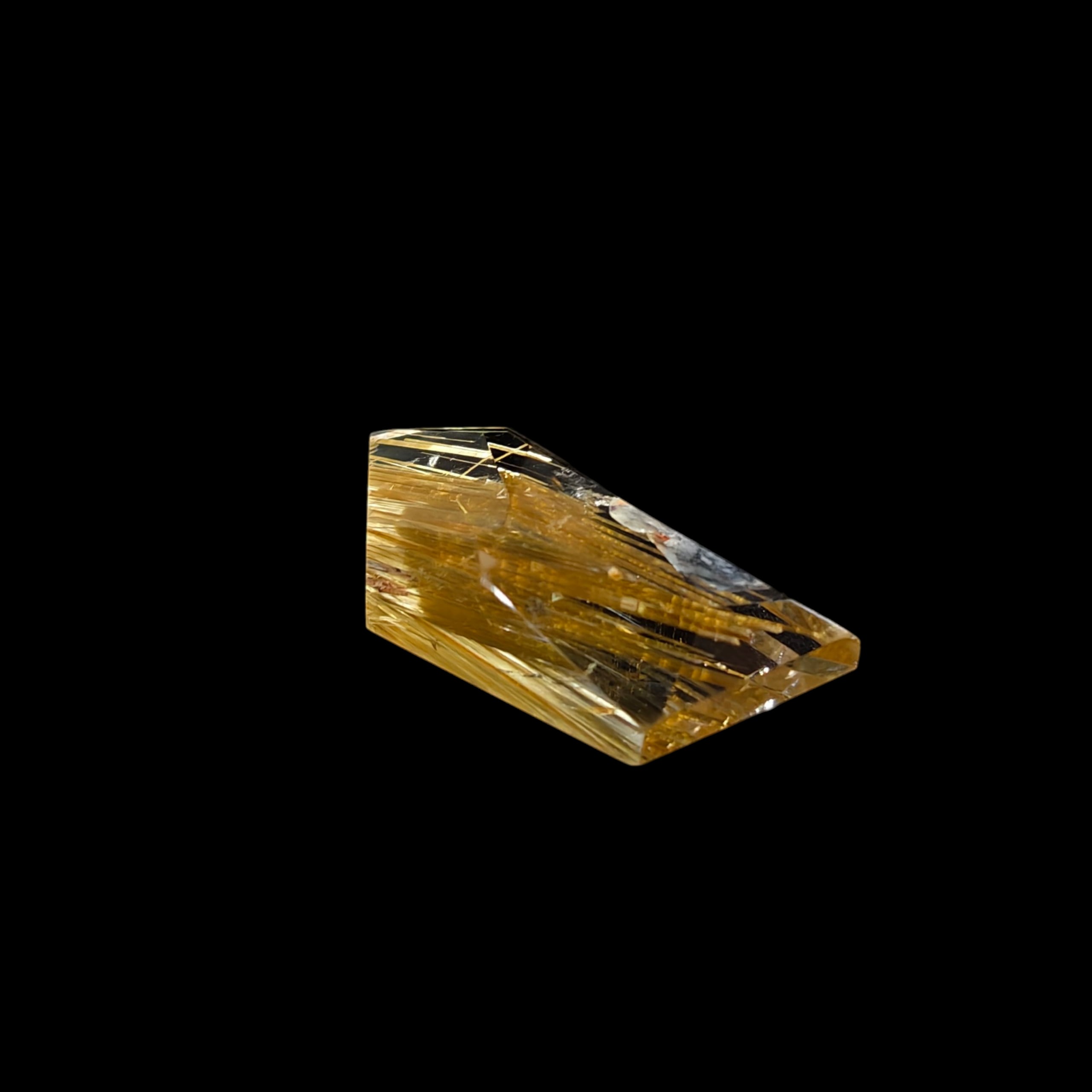ルチルクォーツの原石を切り出し、ルチル特有の針が美しくみえるよう1つ1つランダムにカットしました