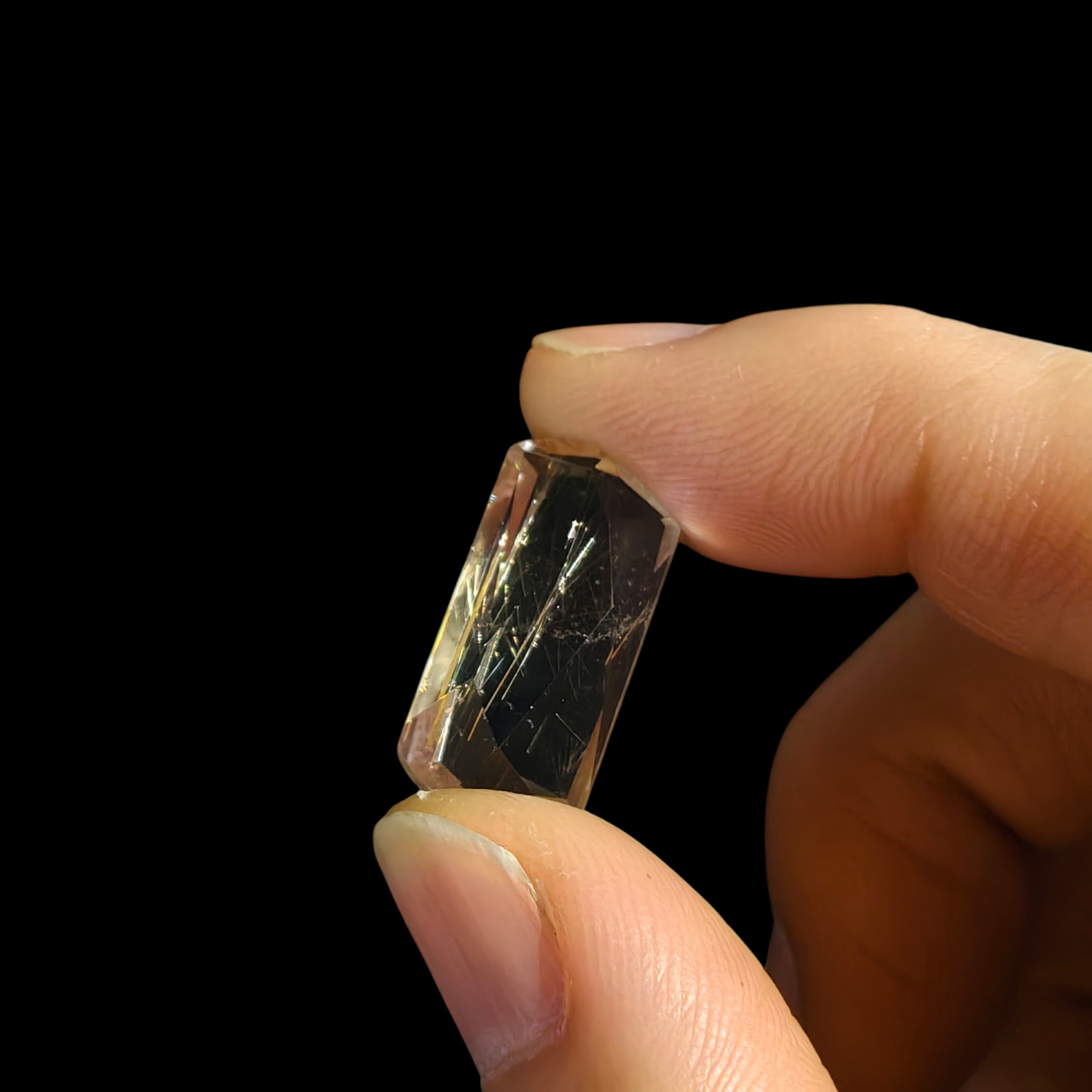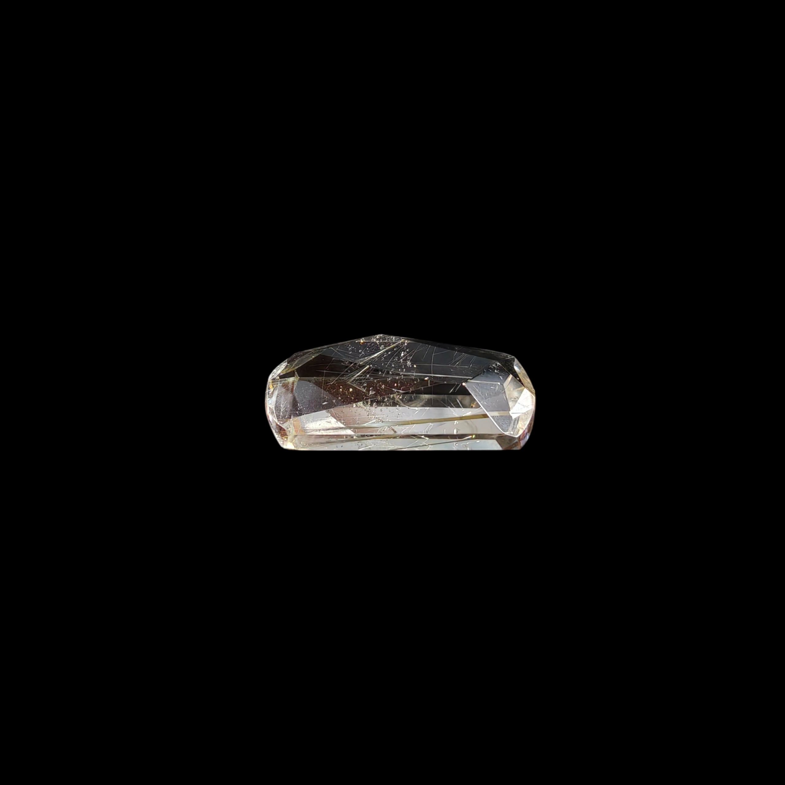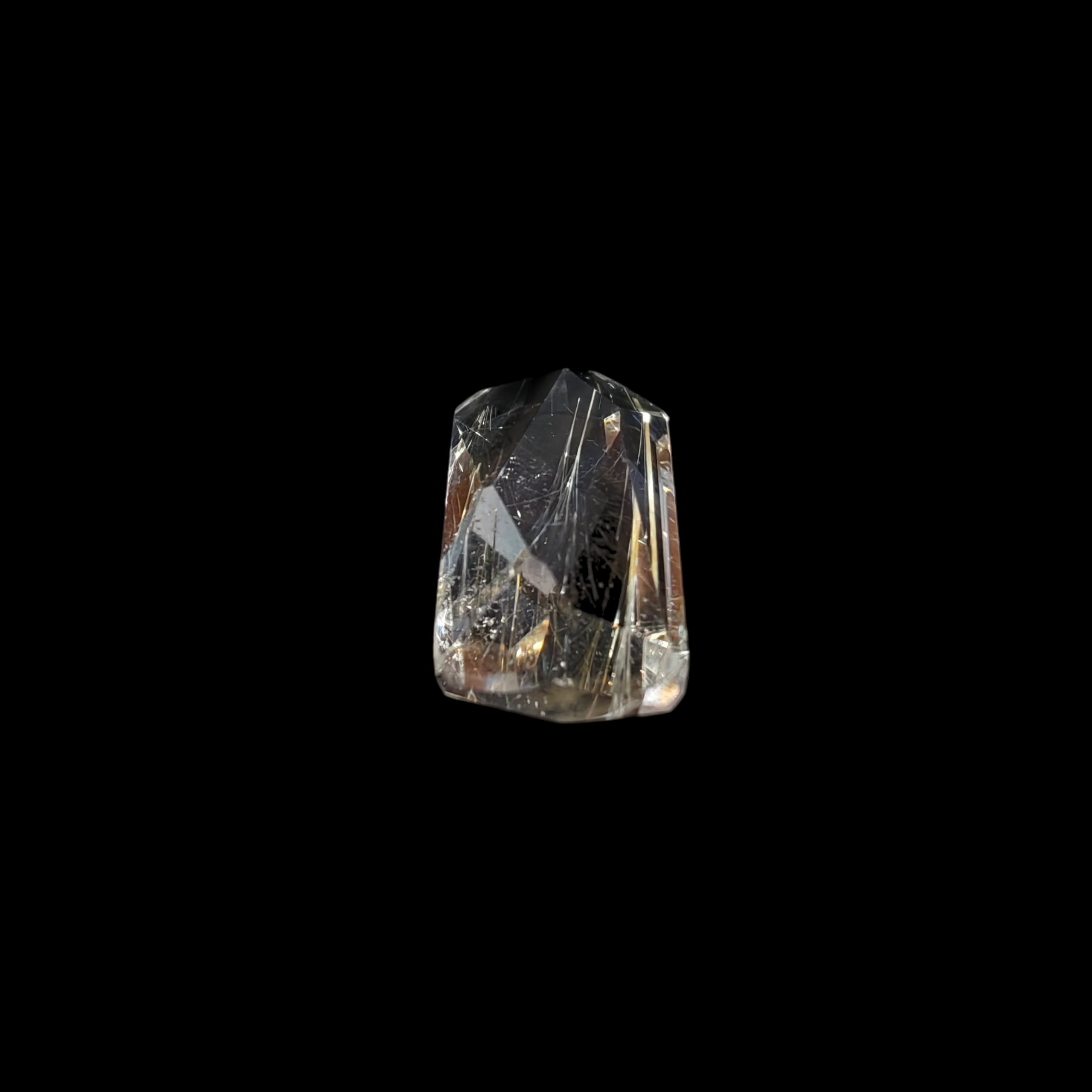 ルチルクォーツの原石を切り出し、ルチル特有の針が美しくみえるよう1つ1つランダムにカットしました