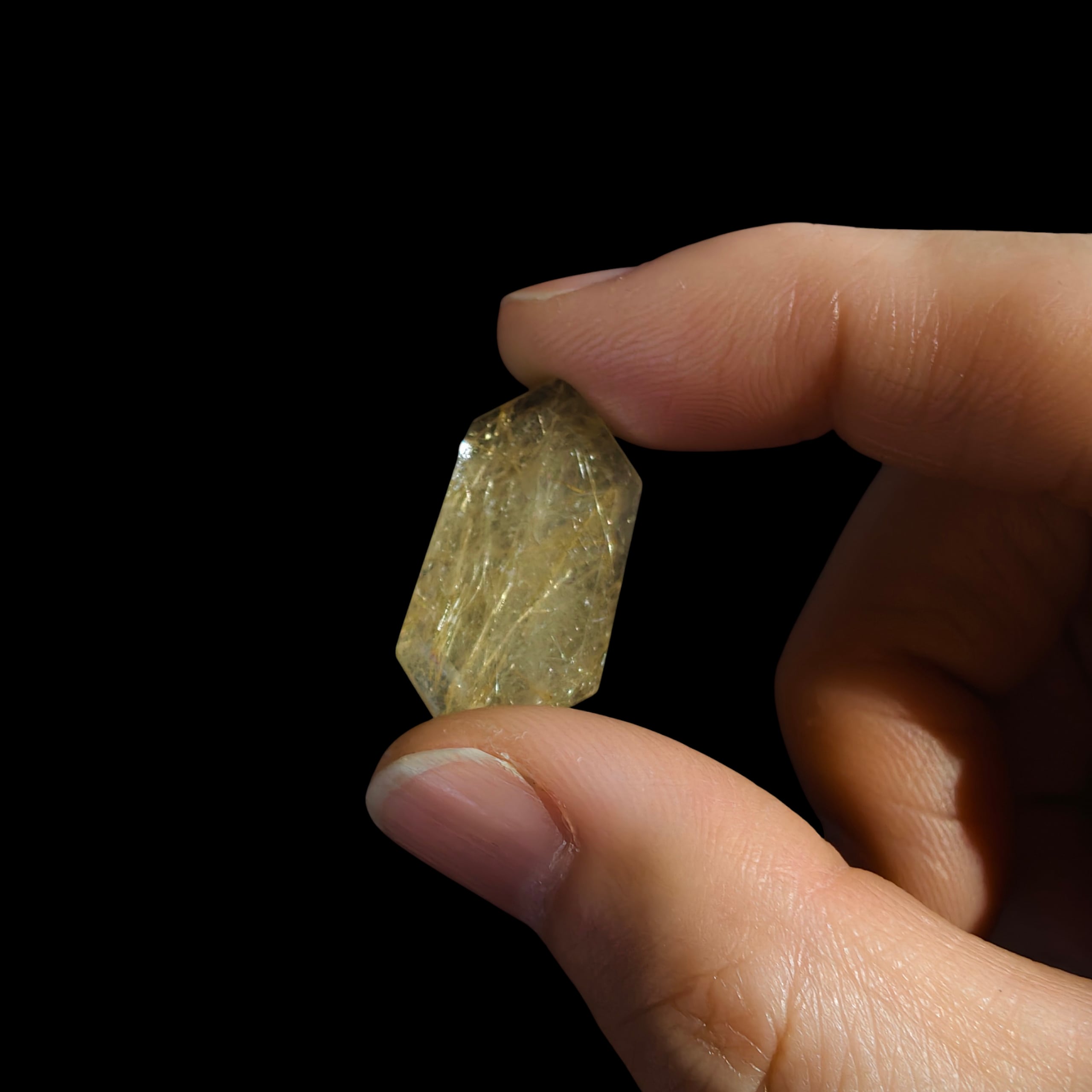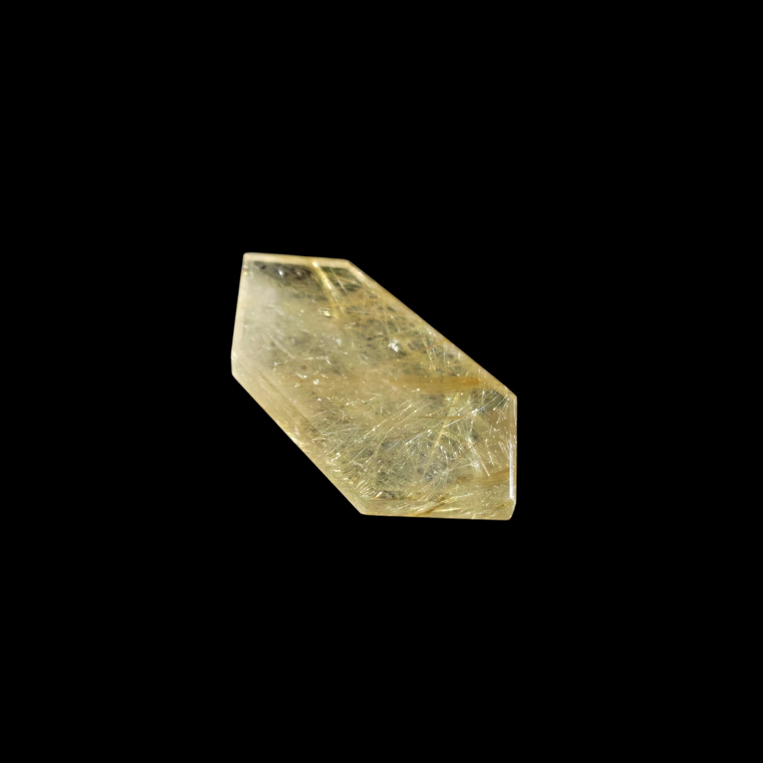 ルチルクォーツの原石を切り出し、ルチル特有の針が美しくみえるよう1つ1つランダムにカットしました