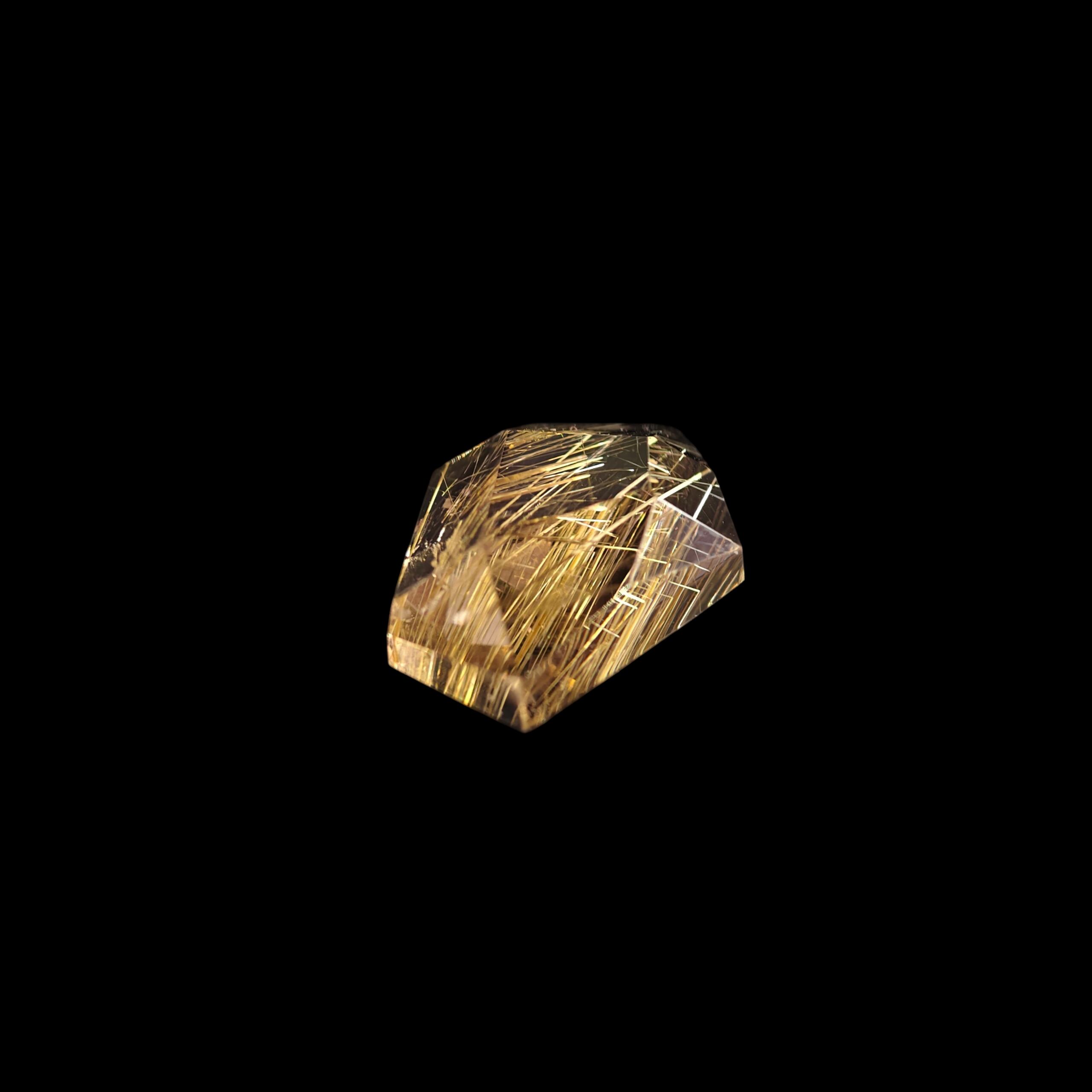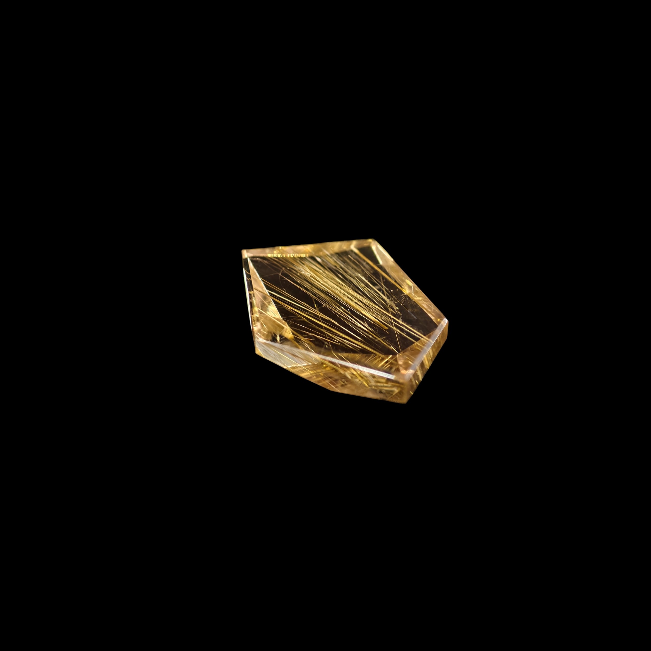 ルチルクォーツの原石を切り出し、ルチル特有の針が美しくみえるよう1つ1つランダムにカットしました