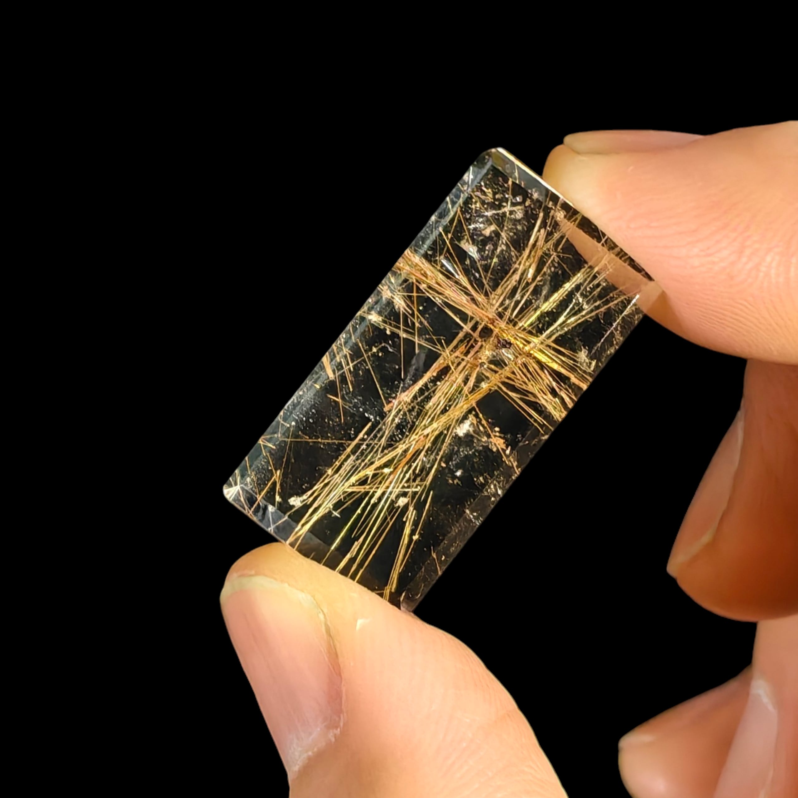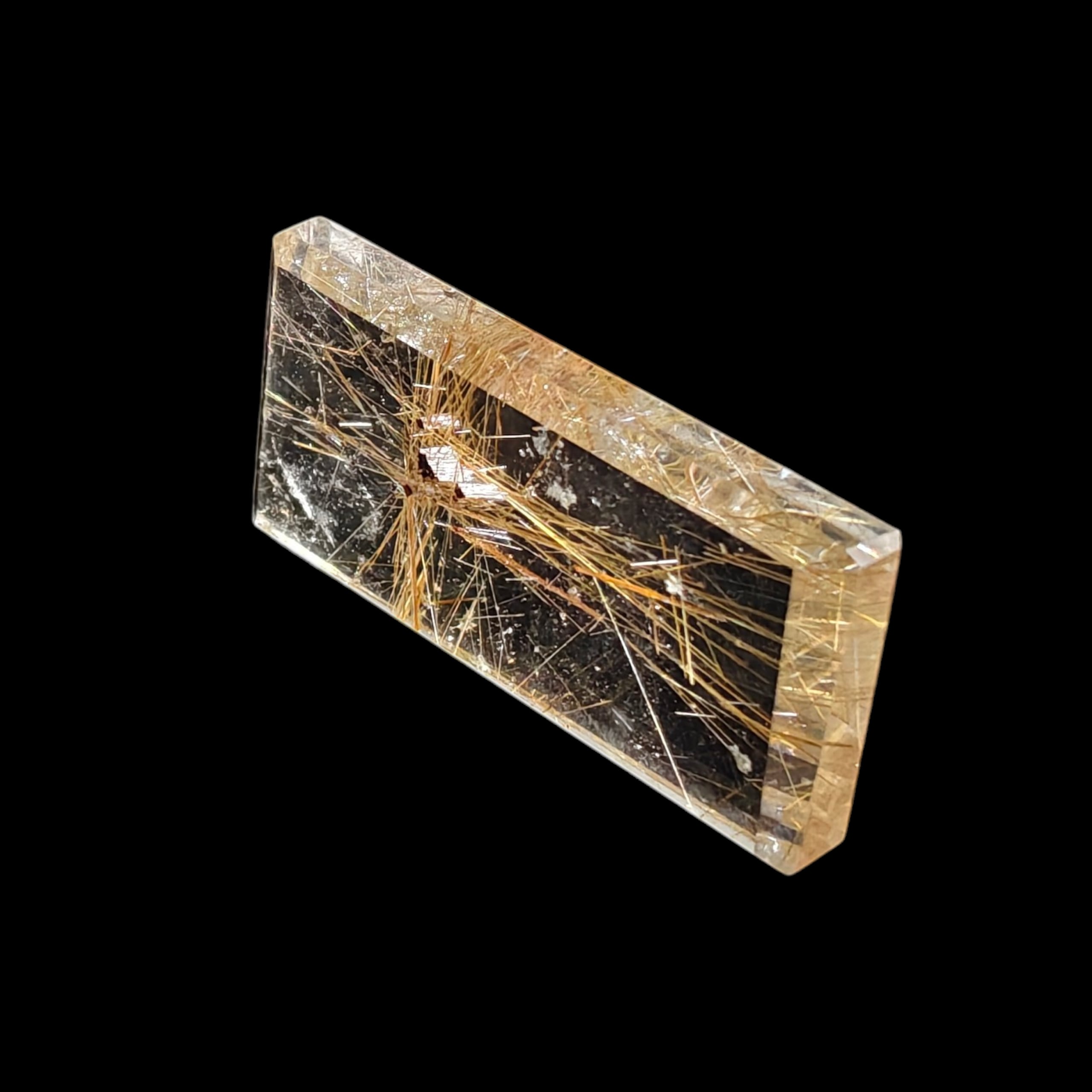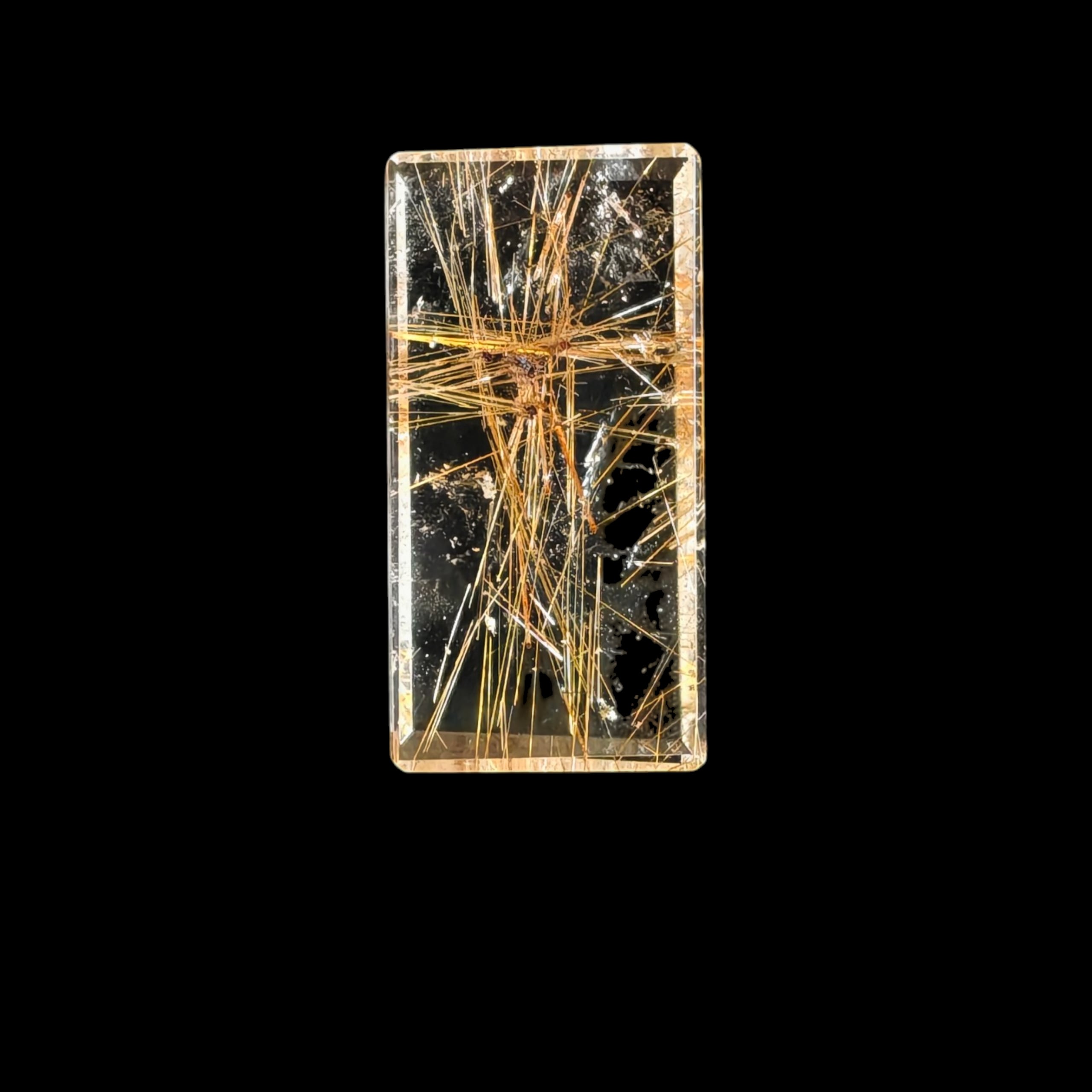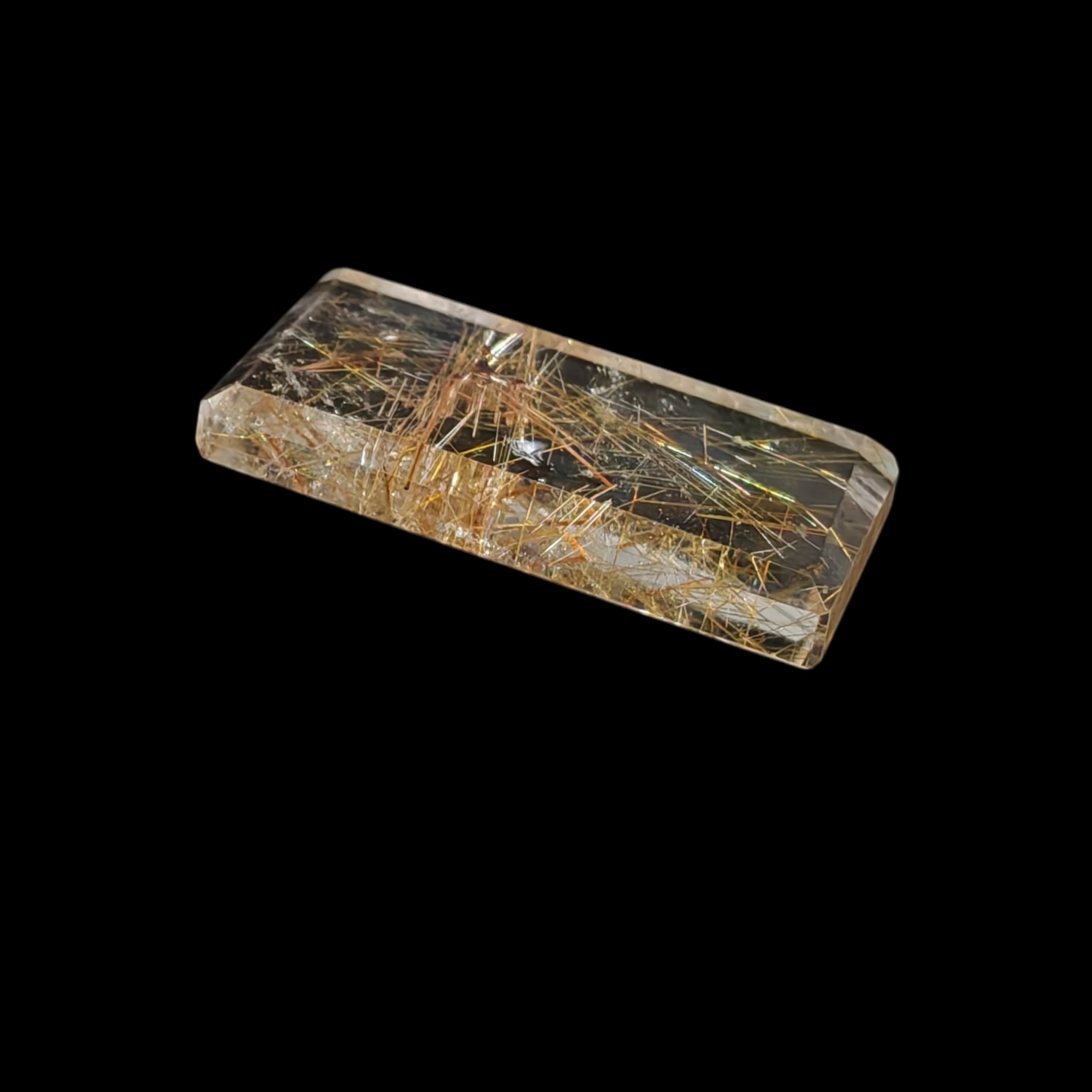 ルチルクォーツの原石を切り出し、ルチル特有の針が美しくみえるよう1つ1つランダムにカットしました